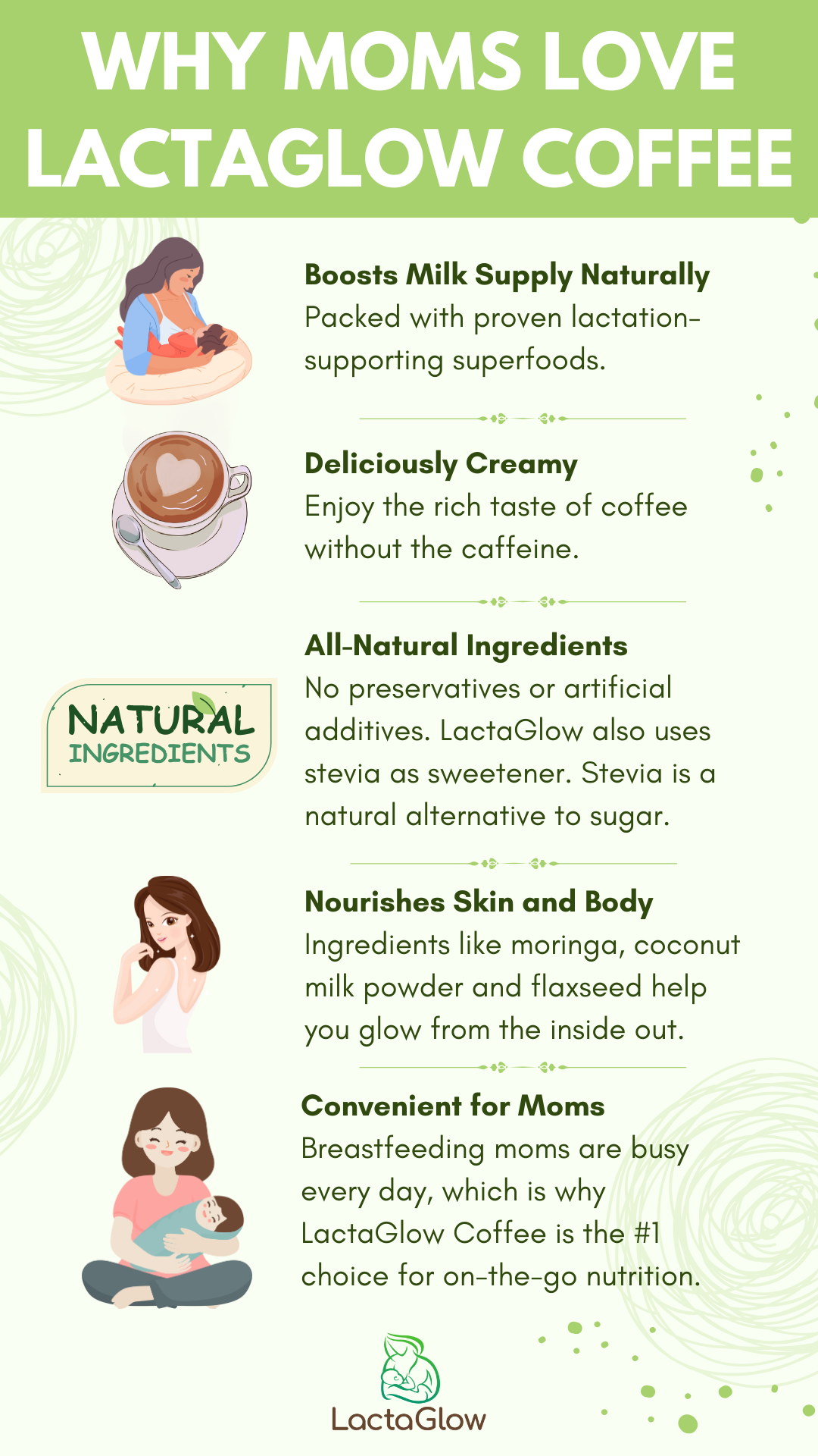 With every cup of LactaGlow, you’re nourishing your body, boosting your milk supply, and enjoying a guilt-free coffee moment that’s just for you.